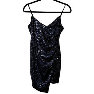 🔴 2 for $20 Lulus Call the Limo Blue Sequin Faux Wrap Bodycon Dress S
