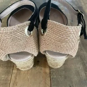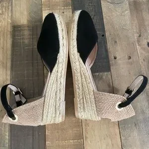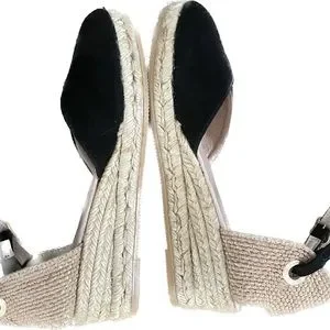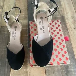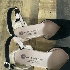 The Eric Michael is the perfect complement to your summer style. The espadrille wedge sandal features a leather upper with an adjustable buckle at the ankle strap.