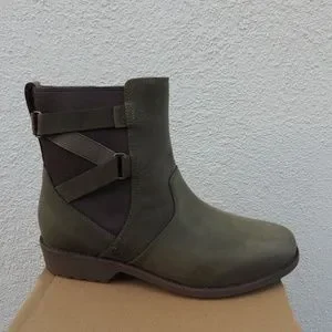 NEW Teva Ellery Ankle boots leather waterproof olive SIZE 5 DARK OLIVE NIB