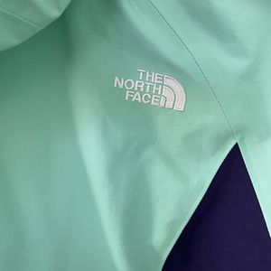 The North Face Women’s Teal and Purple Small Shell Jacket. Excellent shape. Interior color shows the right purple shade!