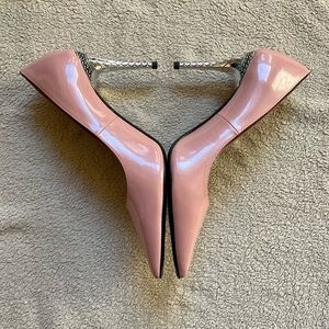 Pearlized soft pink patent leather with silver style heels by J. Renee. Size 9; new from smoke free environment.