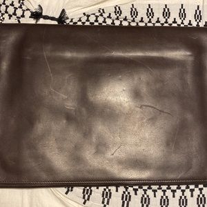 Coach Leather portfolio. Mahogany brown with pockets inside for business cards, classic brass latch. Some marks around it but still in excellent shape. Barely used and great for interviews or meetings.
