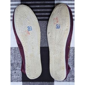 Sold🔴 NWOT silk embroidered Japanese floral rosette maroon ballet Slippers sz 8