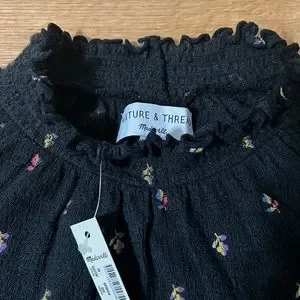 Madewell Texture & Thread Ruffled Mockneck Top in Rainbow Buds /Black Medium NWT