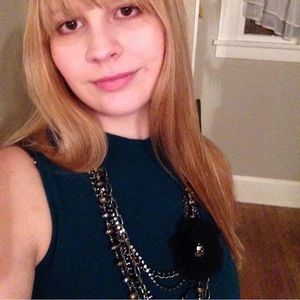 Okay preowned condition. Slight pilling all over. (See last picture). No stains or rips. A pretty dark teal color. Brand is Everly, bought from ModCloth. Size medium, about 15 inches armpit to armpit. About 24 inches from armpit to bottom.