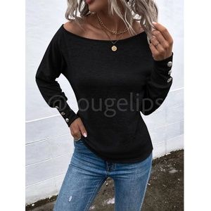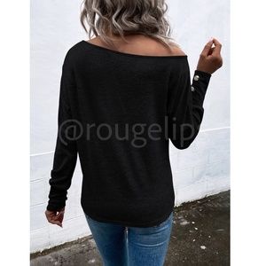 Black One Cold Shoulder Asymmetric Boat Neck Long Sleeve Tee Shirt
