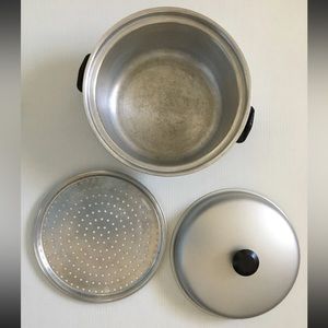 Vintage Wear Ever No 824 Dutch Oven Aluminum Stock Pot Steamer Strainer 4 Quart with Lid. Made in USA.