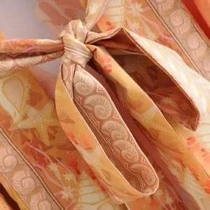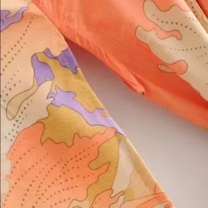Gorgeous mermaid dreams boho printed coral orange long kimono duster robe with seashells and reef design with a mermaid on the backside. Front side has double pockets, matching sash tie, side slits and under underarm kimono style sleeves.