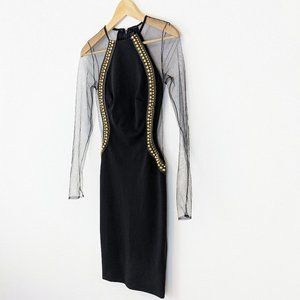 Philipp Plein Couture Limited Edition Black Dress Mesh Studs Leather