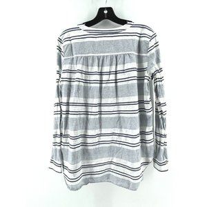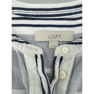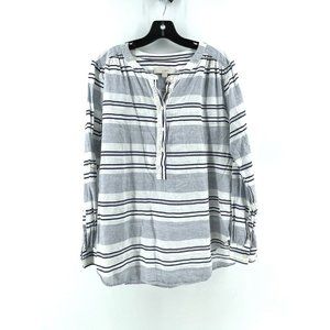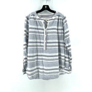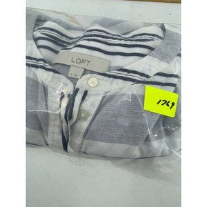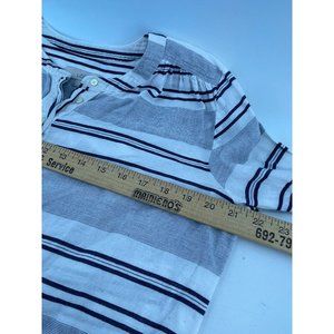 Ann Taylor LOFT Women's White Blue Striped Button Casual Peasant Top Medium