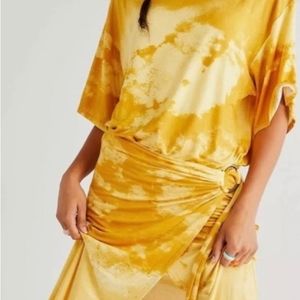 Turn heads in the knit dress of the season featured in a wrap-style silhouette and subtle tie dye print for cool and classic style no matter the season.