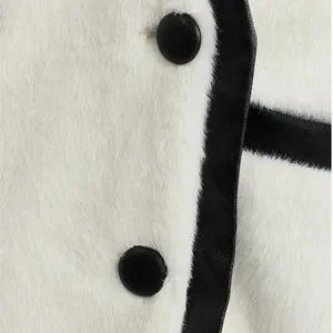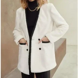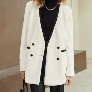 luxury faux leather detailed fuzzy jacket elegant