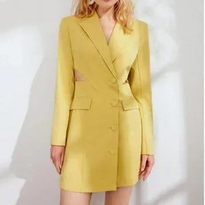 side cut out buttoned blazer dress chic classy elegant fall winter trend yellow