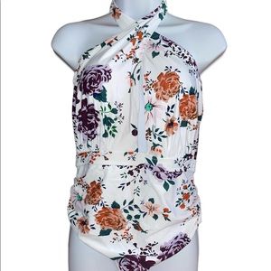 NWT ๐บHP๐บ CUPSHE White Floral One Piece Ruched Halter Swimsuit XL
