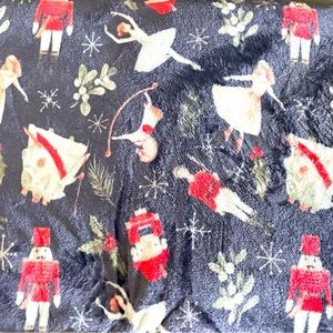 Brand new, never used soft gray NUTCRACKER ballet blanket/throw with pictures of nutcrackers, ballerinas, hobby horses and mice! So festive!