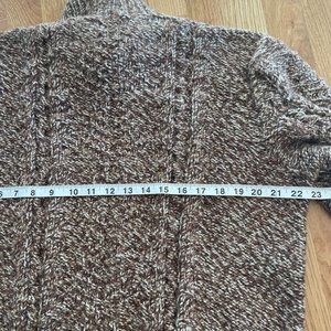 Vintage Pullover Chunky Hand Knitted Cable Knit Women’s Sweater Cowl/Turtleneck Brown/Tan/Lurex