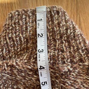 Hand knitted – unsure of materials – feels like a stiffer wool or acrylic lurex but not sure.
