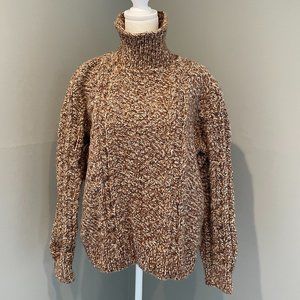 Vintage Pullover Chunky Hand Knitted Women’s Sweater Cowl/Turtleneck Brown/Tan