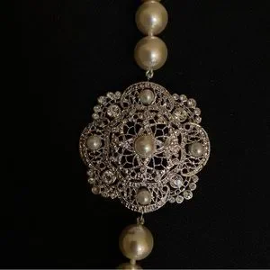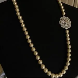 Camrose and Kross JBK Collection Faux Pearl Necklace. Excellent Preowned Condition. No wear. Signed Swarovski on clasp. 26” L