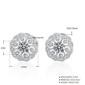 Certified 1ct. t.w. Moissanite Diamond Flower Stud Earrings NEW
