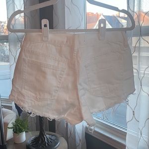 Dramatic raw hems and allover distressing play up the old-favorite appeal of these nonstretch denim shorts.