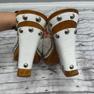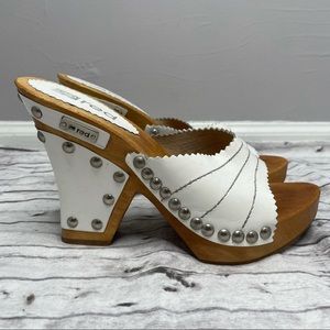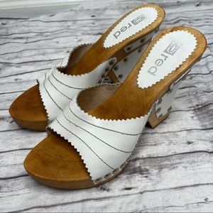 ECKO RED White Leather Wood Block Wedge Heels