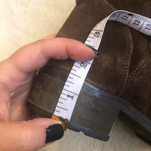The perfect pair of boots for your fall and winter wardrobe! Soft brown suede with side zip closure. Decorative buckles. 1.5in heel. Pair with a variety of outfits! The label insert on one boot is missing, but it’s not visible when worn! Some light normal wear, but still so much life left! Made in Italy.