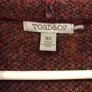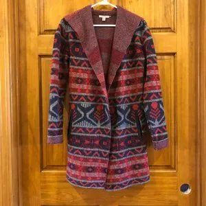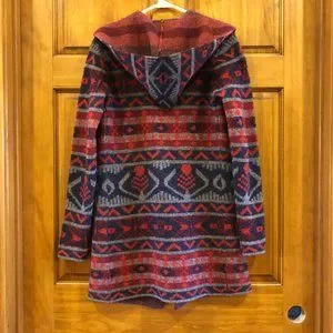 Toad & Co Red Patterned Lambs Wool Open Front Hooded Cardigan Size XS