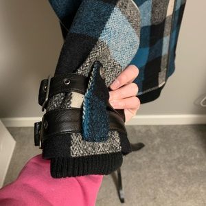 A heavy duty plaid jacket that is unisex. It is quite a heavy jacket so it’s great during chillier temperatures. It has buckles around the wrist and pockets. The label is in Japanese so unsure of exact material.