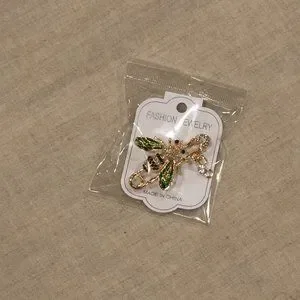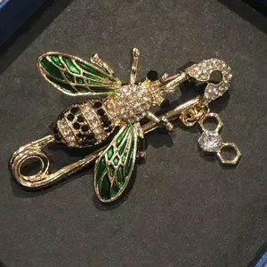 This brooch is perfect for anyone who loves bees, nature, or simply wants to add a unique and stylish accessory to their wardrobe. It can be worn on a jacket, shirt, dress, or even used as a beautiful accent on a bag or hat. The brooch also comes with a metal pin on the back which makes it easy to secure to any fabric.