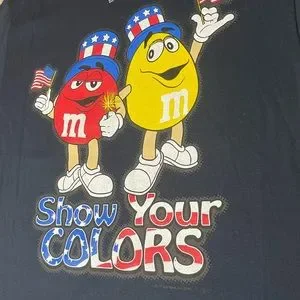 NWT M&M Tee Yellow Red Show Your Colors Patriotic American Flag Hats 4th July L
