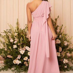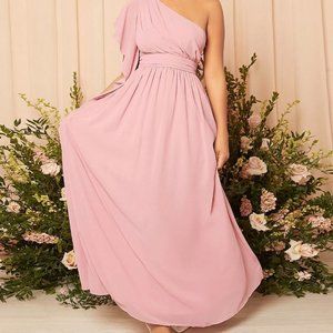 Pink Ruched Chiffon One Shoulder Maxi Dress