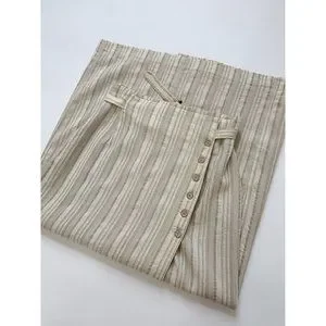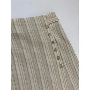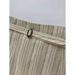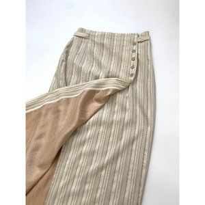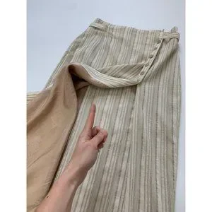 Vintage Oatmeal Linen & Cotton Blend Long Wrap Striped Midi Skirt size 6-8 or Medium