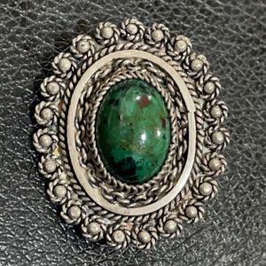 EILAT Stone Pin/Pendant/Brooch Sterling Silver Fine Jewelry 1.25” in. inch inches. Green Blue. Vintage vtg. The back says: St925 Israel
