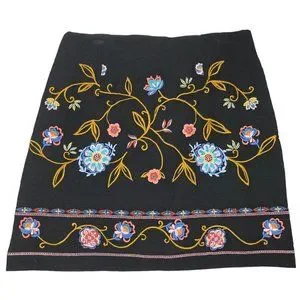 Black with multi color floral embroidered design