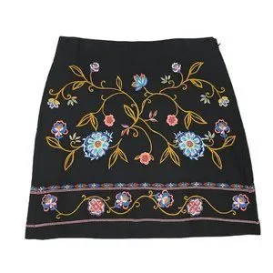 Ann Taylor Loft Skirt Womens 6 Black Floral Embroidered Mini Boho Straight NWT.