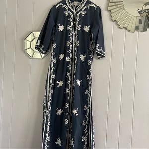 Vintage Leandra Crochet Embroideries Blue & White Floral Caftan