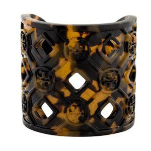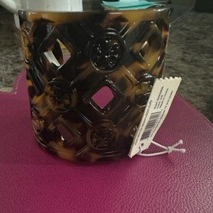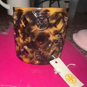 New! TORY BURCH Tortoise Resin Logo Cuff Bracelet Size Small