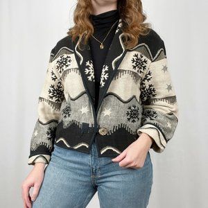 Stunning Vintage Oversized Snowflake Blazer Jacket Coat Boho Western Christmas