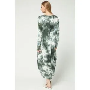 We are obsessed with this tie dye midi dress. It is soft, stretchy & made of a light weight ribbed fabric. It features a round neckline, dropped shoulders, long sleeves, side seam pockets, a scooped high low hemline and a midi silhouette. We love it styled with a denim jacket or with a front knot and some casual jewelry.