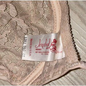 Vintage Jezebel 1283 Renee of Hollywood Bra Sheer Lace UW Backless 36C Beige