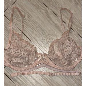 Women’s Vintage Jezebel Renee of Hollywood Bra, beige, lace, sheer, unlined/unpadded, underwire, backless