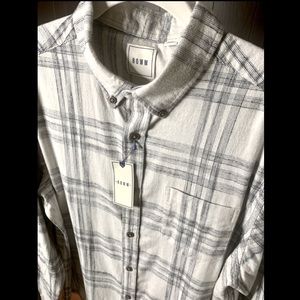 NWT Men’s ROWM Button Down Shirt in Light Gray/Black Plaid, Size Large