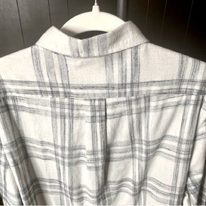 NWT Men’s ROWM Button Down Shirt in Light Gray/Black Plaid, Size Large.