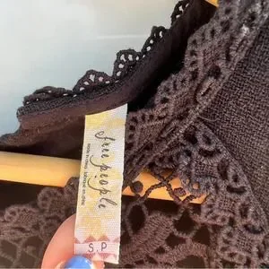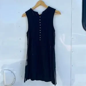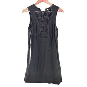 Free People Black Sleeveless Dress Size Small Crochet Detail Button Back