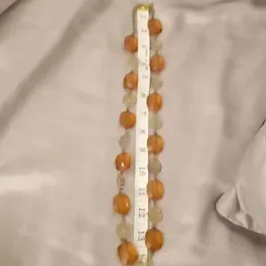 Antique Necklace with Beautiful Amber and Interspersed Brass Roses Measures 14" fully extended (3.5" extender)