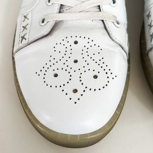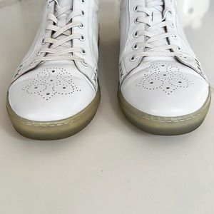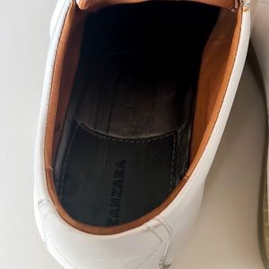 Zanzara Drum White Soft Leather Sneakers. Stunning cutout detail throughout. Lace up closure. Padded insole for extra comfort. Good pre-owned condition. Small signs of wear on heels. Please see all detailed photos as they are part of the description. Men’s Sz 10.5