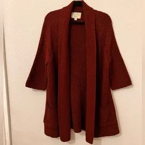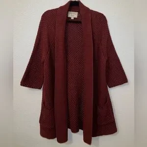 Lucky Brand Cardigan Burgundy 3/4 Sleeve size Large