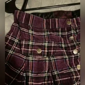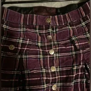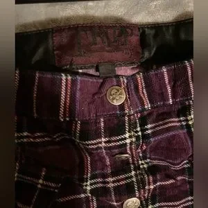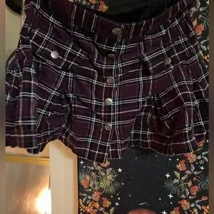 Tripp NYC purple plaid skirt in a size xsmall, but honestly it fits like a small. In awesome condition, buttons all work and it’s in awesome original vintage emo form.