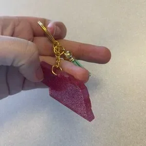 The keychain contains pink glitter